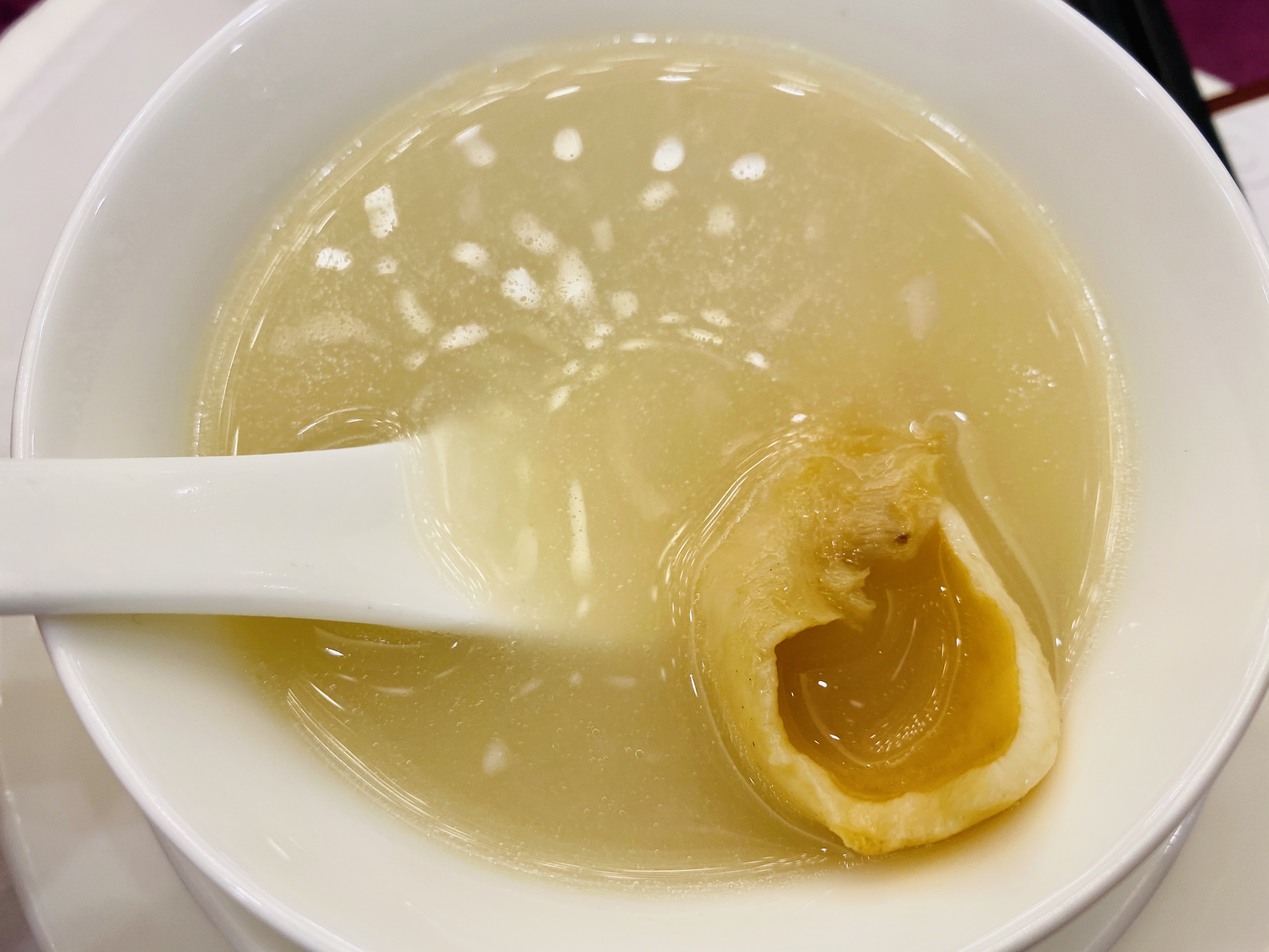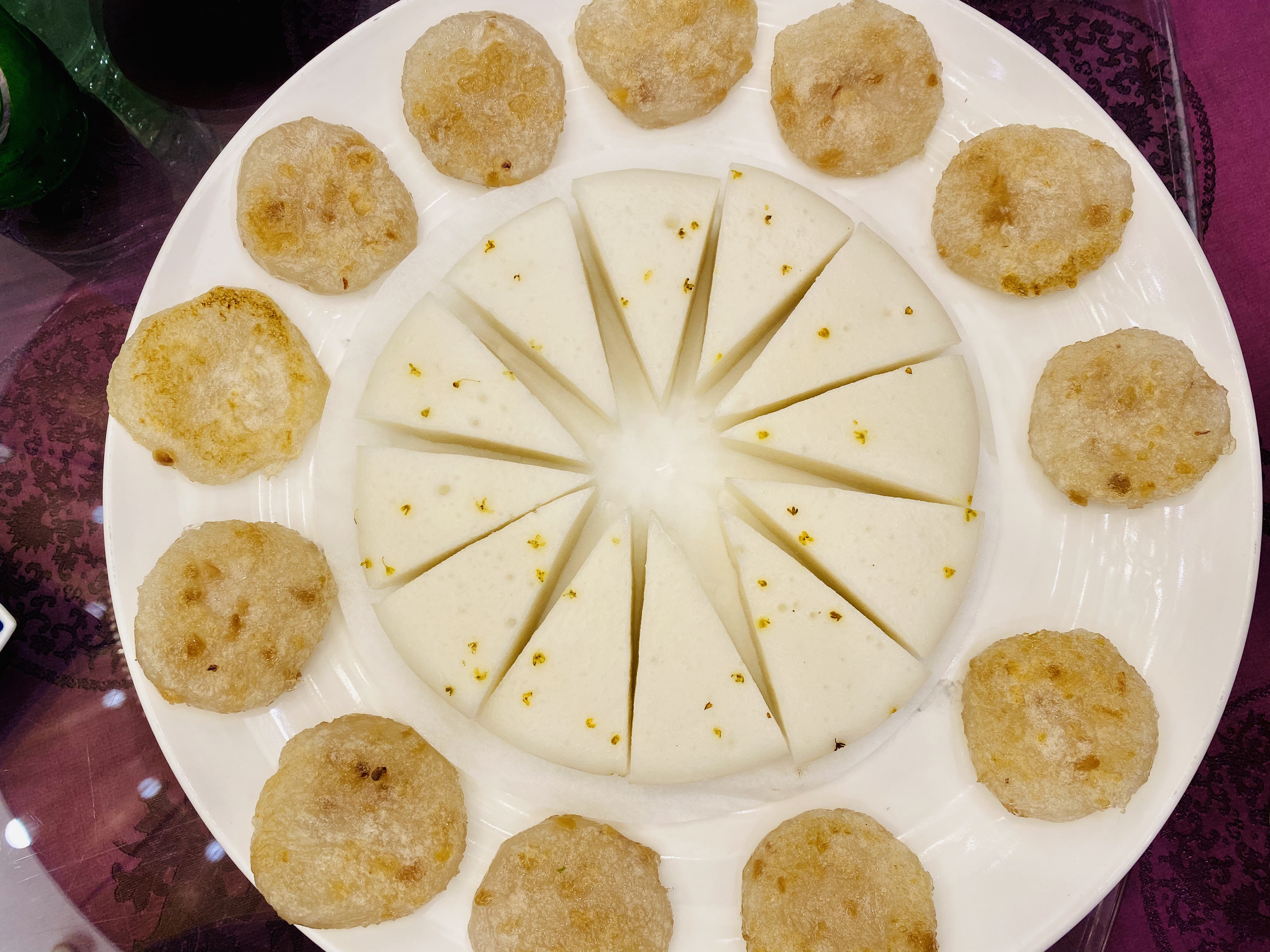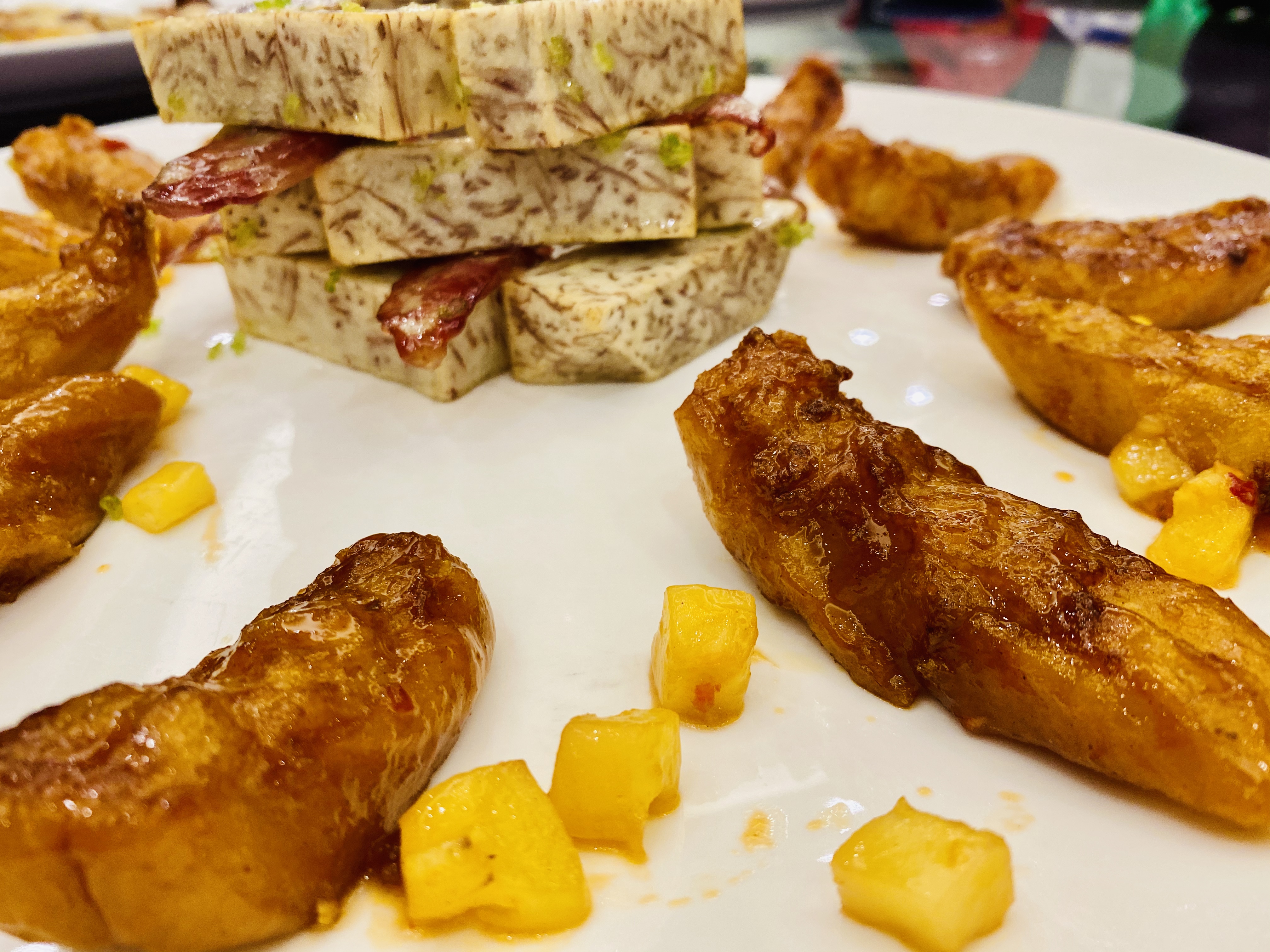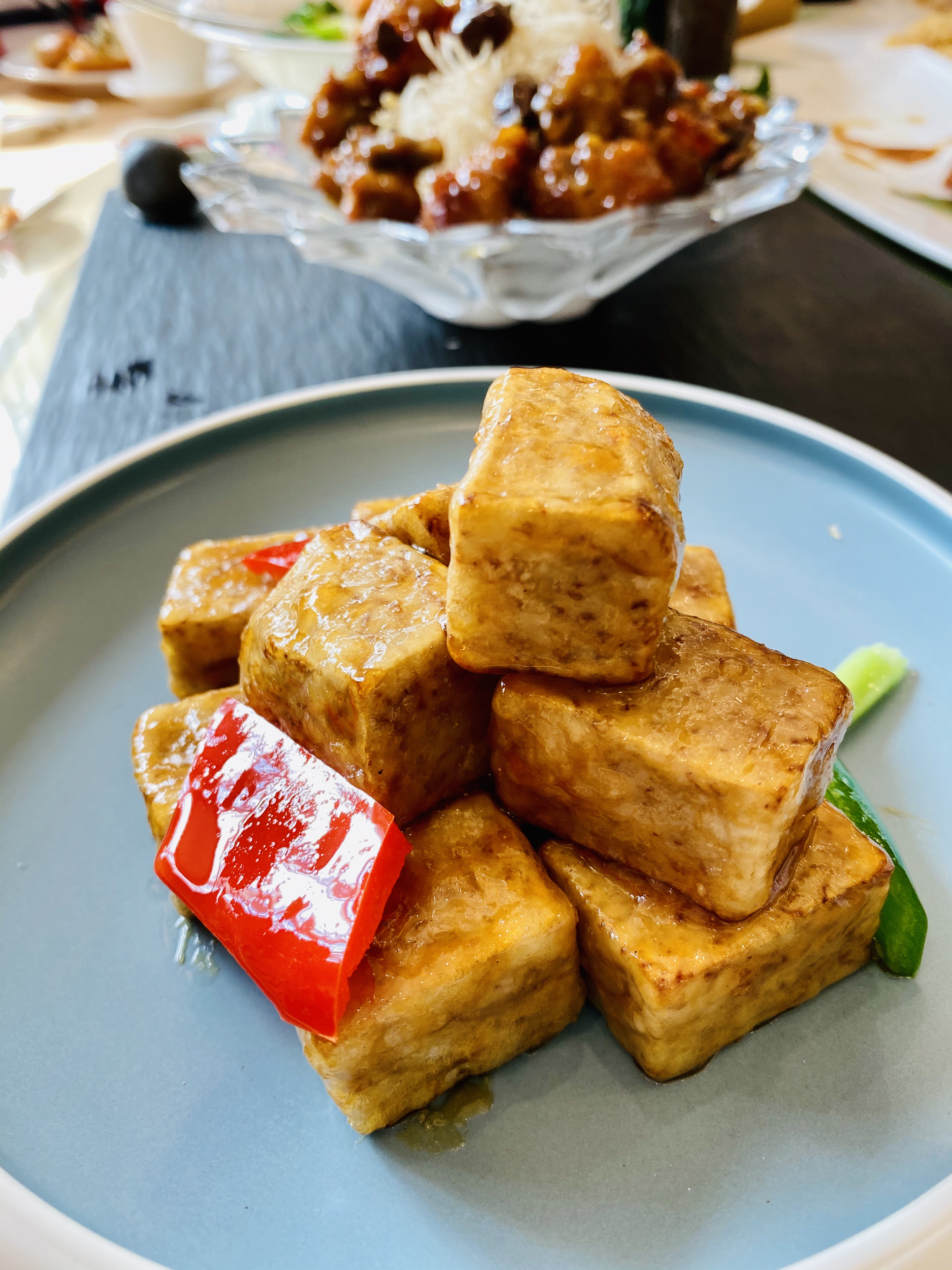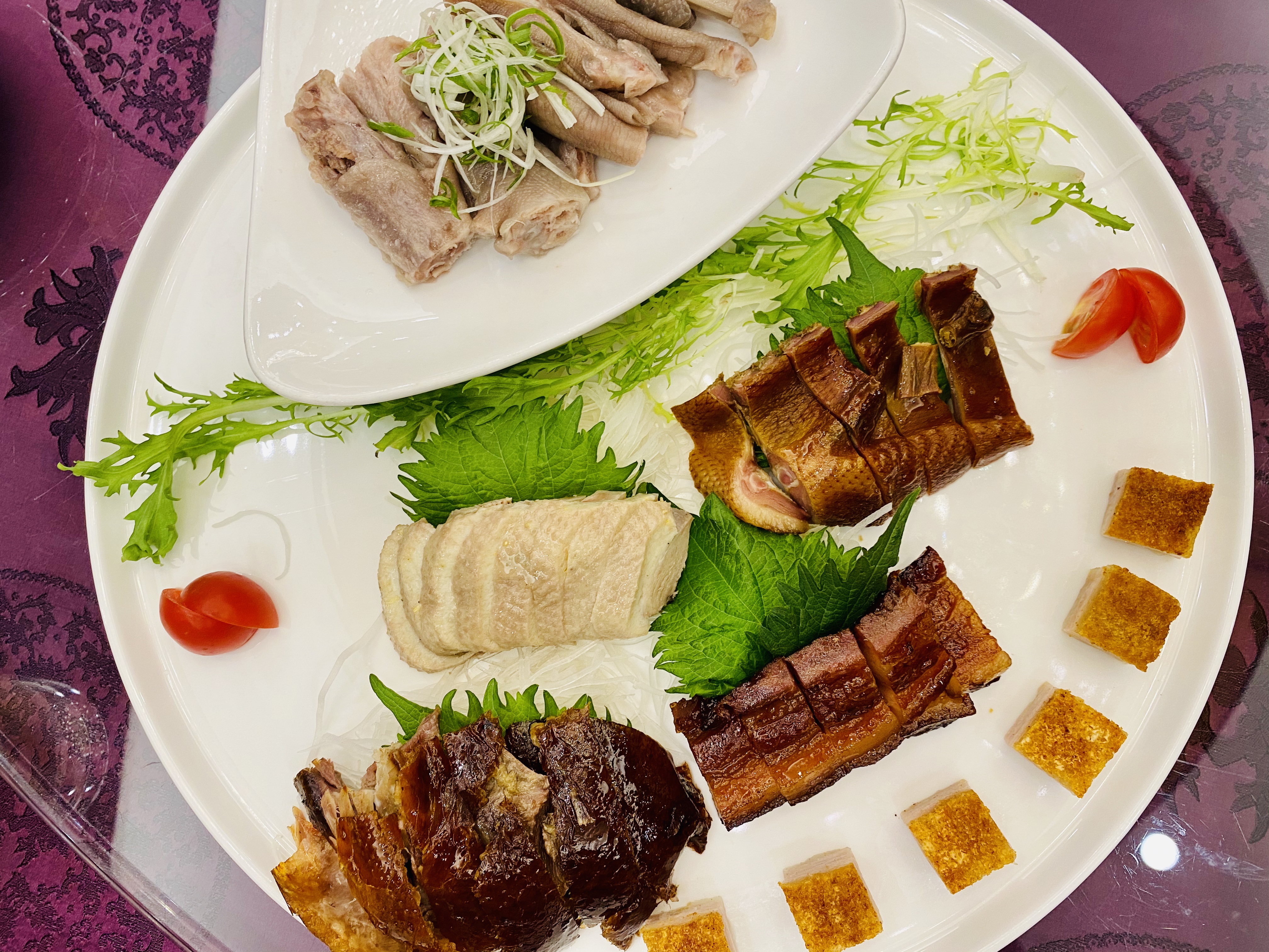 무로 만든 짠지, 혹은 피클 스러운 전채입니다. 새콤하고 뽀독뽀독 씹히는 식감이 애피타이저 역할을 잘 하네요. 역시 새콤하게 저미어진 오이입니다. 이녀석도 상콤하면서도 신선하네요. 타로를 튀겨서 마치 한국의 맛탕 비슷하게 달달한 소스로 볶아낸 전채입니다. 방울 토마토! 이 전채는 레시피가 궁금할 정도로 너무 신선하고 맛있었습니다. 어떻게 만들었을 지 계속 궁금하던.... 우엉이었을까요? 여튼 우엉스러운 녀석을 달달 짭조름하게 볶아내었는데, 역시 나쁘지 않습니다. 한국이었다면 흰 밥이랑 먹어도 괜찮을 반찬같은 음식이네요. 일종의 바베큐 플래터네요. 크리스피 포크, 차슈, 오리, 거위 등등의 바베큐들이 담겨있습니다. 여기서 저는 차슈 → 크리스피포크 → 오리바베큐... 순서로 좋아하지유.건부레가 들어간 광동식 탕입니다. 담백합니다. 건부레에는 그 뭐시냐... 피부에 좋다는 콜라겐이 많이 들었다고 하던데, 중식당 가시면 많이 드시길 바랍니다. 좋은 건부레는 많이 비쌉니다.... T.T고기와 마치 한국의 무말랭이 같은 야채를 자잘자잘 썰어 볶은 속을 중식 빵 속에 넣어 먹는 음식입니다. 빵은 부드럽고, 저 볶아진 속은 짭조름하면서 담백합니다. 야채에도 양념이 있어서 식감과 맛을 배가합니다. 무슨 생선이었는지 기억은 안나네요. 생선박사님 계시면 나중에 이거 보고 알려주시면 감사하겠습니다. 살이 부드럽고 마치 연하게 조리한 조기살이랑 비슷합니다. 쵸이삼이라고 하는 광동 지역의 국민 채소 입니다. 구기자와 치킨파우더를 넣어 익힌 듯 하네요. 보통 광동에선느 굴소스를 뿌려 먹습니다. 파와 생강을 거의 주재료만큼 많이 써서, 파와 생강의 향을 고기에 강하게 베이게 하는 음식입니다. 고기가 뭐였는지는 정확히 기억안나는 데, 건해삼과 같이 볶아내었네요. 중식에서는 해삼도 건해삼을 사용합니다. 역시 해삼의 향과 식감이 달라지죠. 가운데는 타로와 중식 햄이고, 주변에 두른 것은 호박이려나요? 호박 좋아요. 맛있습니다. 호박 아니었나.... 급 헛갈리기 시작하네요. 파인애플과 함께 조리한 거 보면 고기일 수도 있겠다 하는 생각이... 급 드네요. 통닭고기 요리 입니다. (음? 독수리 오형제 비행선인가...)자세히 보시면 알겠지만, 껍질 부분은 기름기를 쫙 빼면서 바삭하게 조리를 하였고... 안쪽 살 부분은 깨를 밀도있게 붙였습니다. 그리고 나서 플레이팅 할 때는 번갈아가면서 뒤집어 놓아 이런 모습이 되었습니다. 셰프의 노고가 돋보이는 요리네요. 굴 튀김입니다. 같이 남방쌀을 튀겨낸거 같은데, 입안에서 씹는 식감의 재미를 주네요. 베이커 안에 관자살을 넣은 요리일까나요?..... 맛있었던 기억은 있는 데.... 흠.... 아래 쪽에는 야채를 깔아서, 함께 먹을 수 있게 한 요리. 조갯살, 어묵 등을 넣은 볶음밥입니다. 이것도 독특하고 나쁘지 않았네요. 첫번째 디저트입니다. 마치 한국의 술빵과 개떡 같은 생김세입니다. 둘 다 달달한 맛입니다. 참고로 1인당 하나씩 먹은 겁니다. 원탁에 가득 사람들이 앉아있기 때문에... 개수가 많네요. 마치 한국의 팥죽 비슷한 디저트입니다. 하지만 한국처럼 걸쭉하지는 않습니다. 탕정도의 농도. 하얀 것은 땅콩/깨속이 들어간 달달한 찹쌀떡 같은 것이라고 생각하면 됩니다. 중국어로는 탕위엔(광동어로는 통윈)이라고 합니다. 입가심은 과일 디저트! 광동지역은 아열대지역이라 과일이 풍부한 곳이죠.