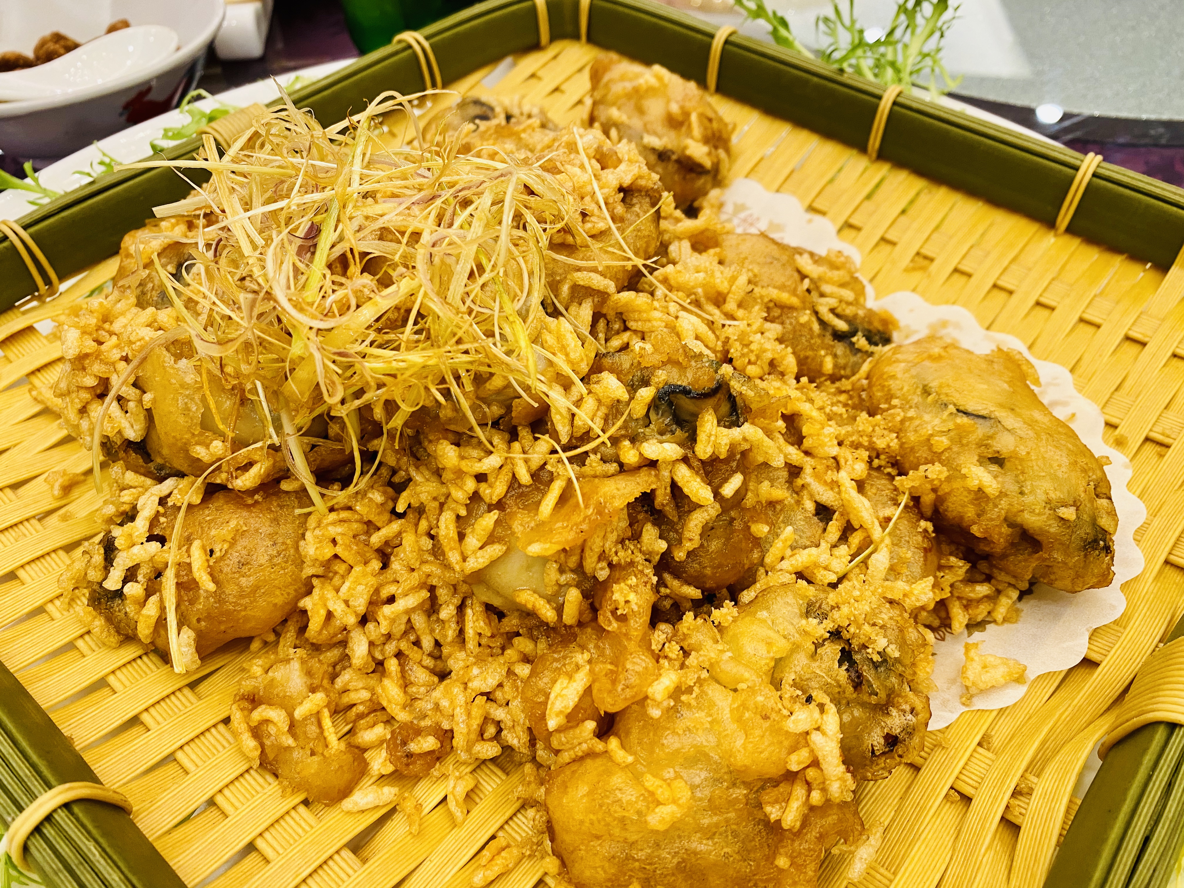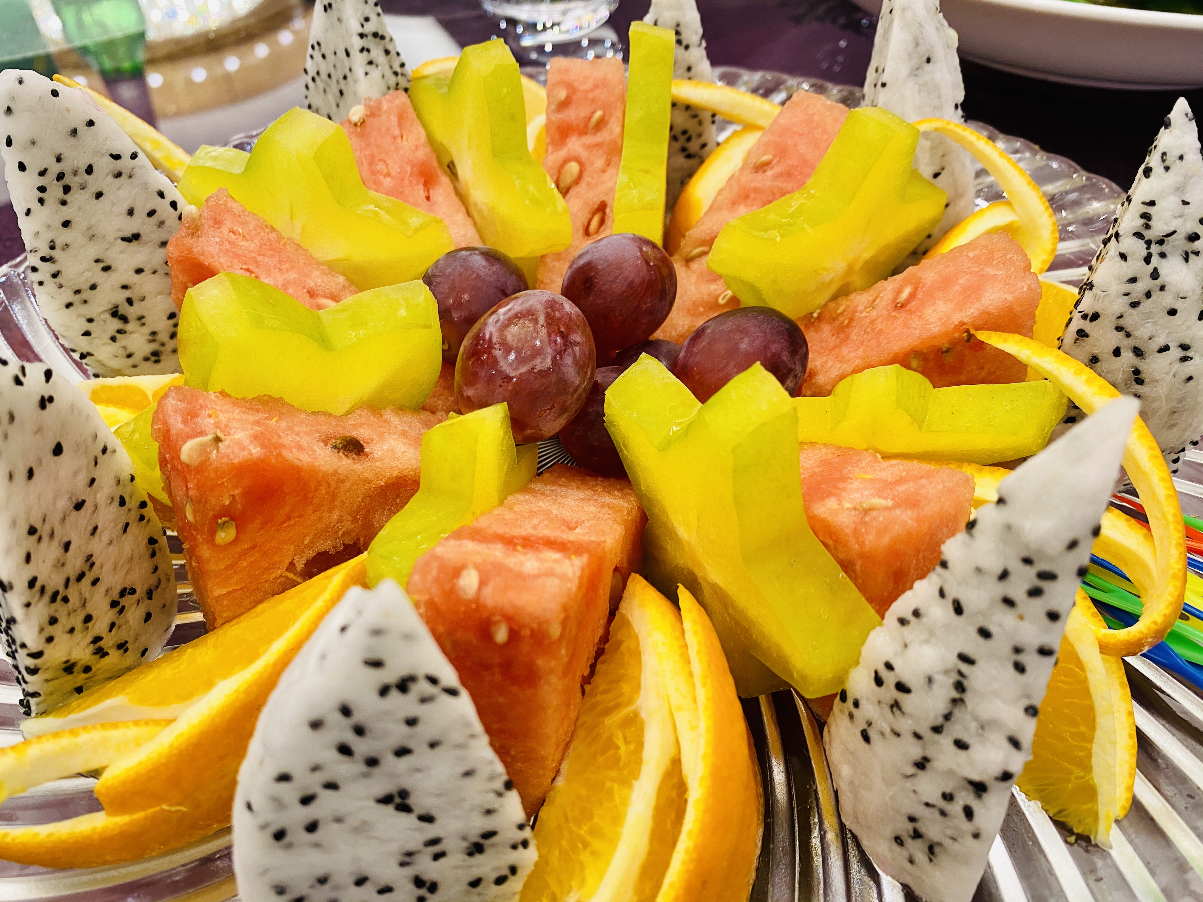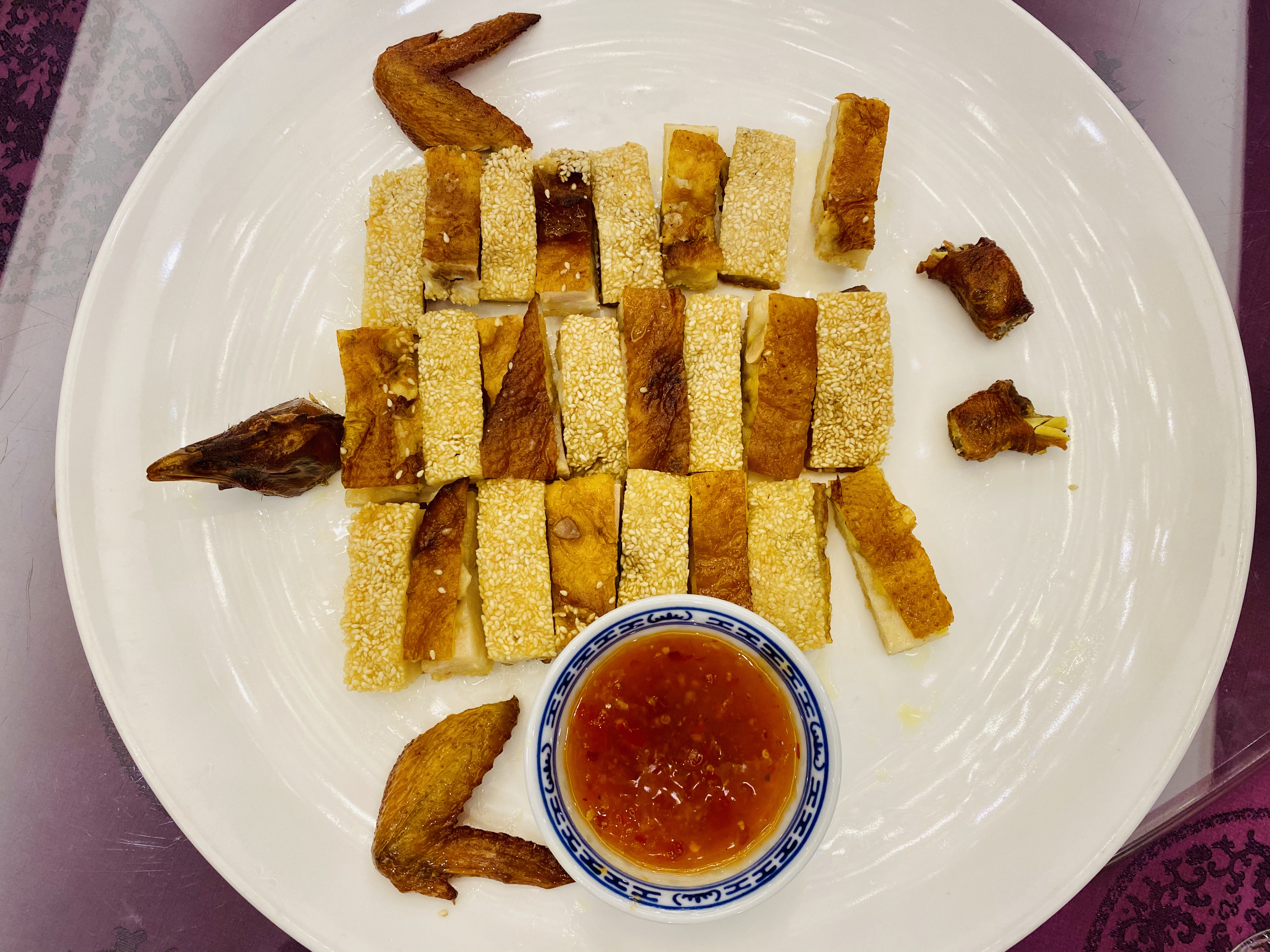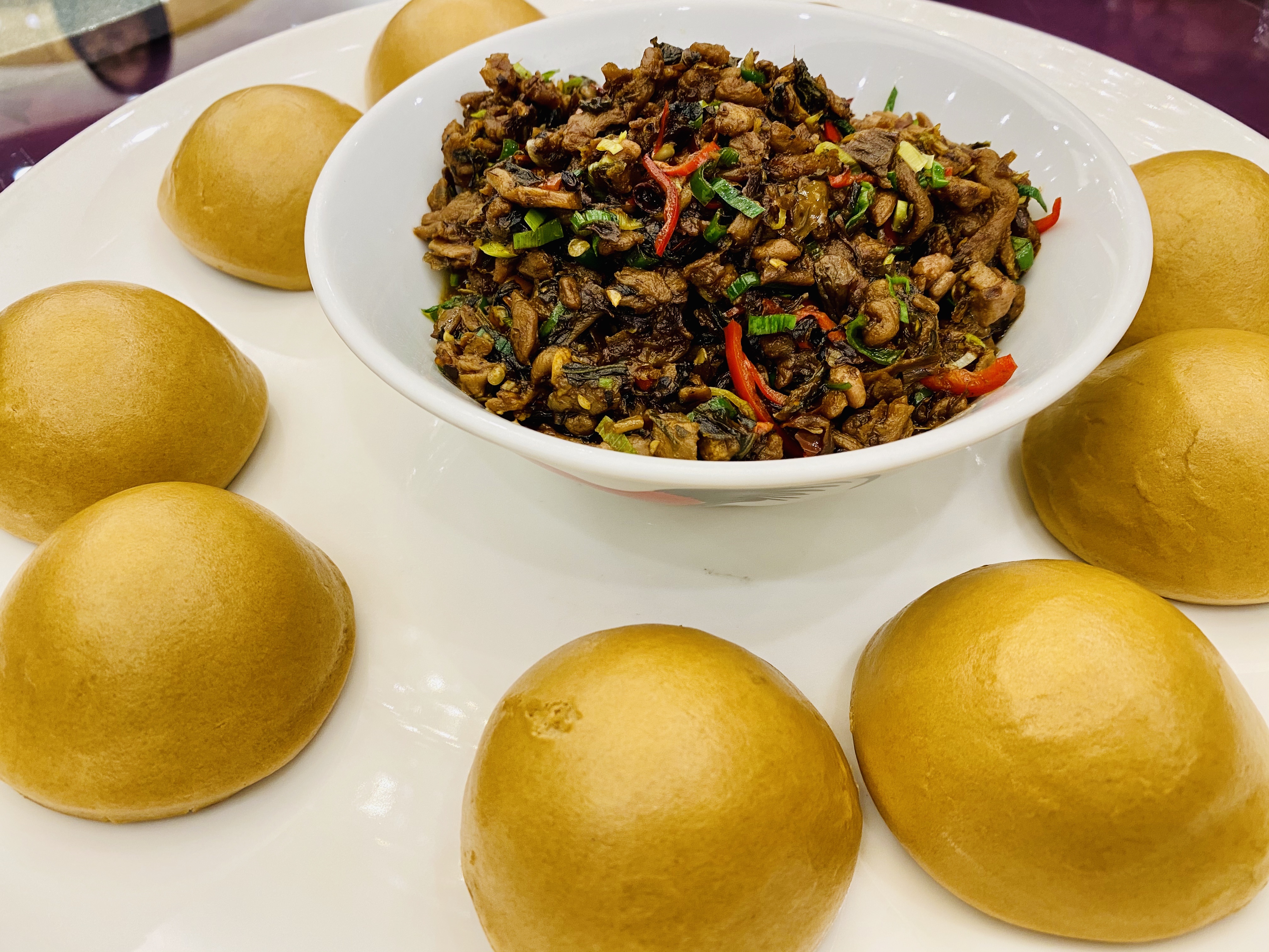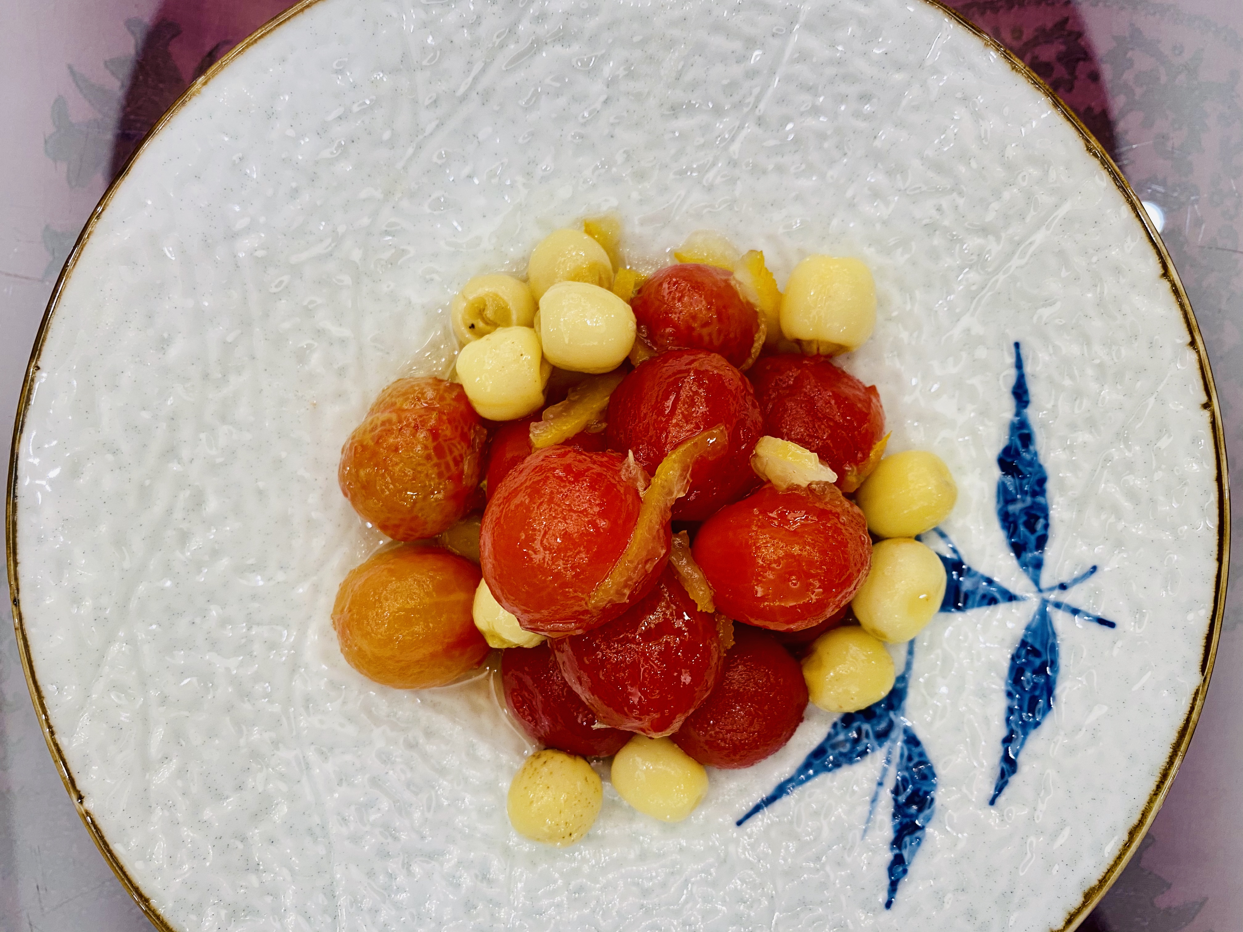 무로 만든 짠지, 혹은 피클 스러운 전채입니다. 새콤하고 뽀독뽀독 씹히는 식감이 애피타이저 역할을 잘 하네요. 역시 새콤하게 저미어진 오이입니다. 이녀석도 상콤하면서도 신선하네요. 타로를 튀겨서 마치 한국의 맛탕 비슷하게 달달한 소스로 볶아낸 전채입니다. 방울 토마토! 이 전채는 레시피가 궁금할 정도로 너무 신선하고 맛있었습니다. 어떻게 만들었을 지 계속 궁금하던.... 우엉이었을까요? 여튼 우엉스러운 녀석을 달달 짭조름하게 볶아내었는데, 역시 나쁘지 않습니다. 한국이었다면 흰 밥이랑 먹어도 괜찮을 반찬같은 음식이네요. 일종의 바베큐 플래터네요. 크리스피 포크, 차슈, 오리, 거위 등등의 바베큐들이 담겨있습니다. 여기서 저는 차슈 → 크리스피포크 → 오리바베큐... 순서로 좋아하지유.건부레가 들어간 광동식 탕입니다. 담백합니다. 건부레에는 그 뭐시냐... 피부에 좋다는 콜라겐이 많이 들었다고 하던데, 중식당 가시면 많이 드시길 바랍니다. 좋은 건부레는 많이 비쌉니다.... T.T고기와 마치 한국의 무말랭이 같은 야채를 자잘자잘 썰어 볶은 속을 중식 빵 속에 넣어 먹는 음식입니다. 빵은 부드럽고, 저 볶아진 속은 짭조름하면서 담백합니다. 야채에도 양념이 있어서 식감과 맛을 배가합니다. 무슨 생선이었는지 기억은 안나네요. 생선박사님 계시면 나중에 이거 보고 알려주시면 감사하겠습니다. 살이 부드럽고 마치 연하게 조리한 조기살이랑 비슷합니다. 쵸이삼이라고 하는 광동 지역의 국민 채소 입니다. 구기자와 치킨파우더를 넣어 익힌 듯 하네요. 보통 광동에선느 굴소스를 뿌려 먹습니다. 파와 생강을 거의 주재료만큼 많이 써서, 파와 생강의 향을 고기에 강하게 베이게 하는 음식입니다. 고기가 뭐였는지는 정확히 기억안나는 데, 건해삼과 같이 볶아내었네요. 중식에서는 해삼도 건해삼을 사용합니다. 역시 해삼의 향과 식감이 달라지죠. 가운데는 타로와 중식 햄이고, 주변에 두른 것은 호박이려나요? 호박 좋아요. 맛있습니다. 호박 아니었나.... 급 헛갈리기 시작하네요. 파인애플과 함께 조리한 거 보면 고기일 수도 있겠다 하는 생각이... 급 드네요. 통닭고기 요리 입니다. (음? 독수리 오형제 비행선인가...)자세히 보시면 알겠지만, 껍질 부분은 기름기를 쫙 빼면서 바삭하게 조리를 하였고... 안쪽 살 부분은 깨를 밀도있게 붙였습니다. 그리고 나서 플레이팅 할 때는 번갈아가면서 뒤집어 놓아 이런 모습이 되었습니다. 셰프의 노고가 돋보이는 요리네요. 굴 튀김입니다. 같이 남방쌀을 튀겨낸거 같은데, 입안에서 씹는 식감의 재미를 주네요. 베이커 안에 관자살을 넣은 요리일까나요?..... 맛있었던 기억은 있는 데.... 흠.... 아래 쪽에는 야채를 깔아서, 함께 먹을 수 있게 한 요리. 조갯살, 어묵 등을 넣은 볶음밥입니다. 이것도 독특하고 나쁘지 않았네요. 첫번째 디저트입니다. 마치 한국의 술빵과 개떡 같은 생김세입니다. 둘 다 달달한 맛입니다. 참고로 1인당 하나씩 먹은 겁니다. 원탁에 가득 사람들이 앉아있기 때문에... 개수가 많네요. 마치 한국의 팥죽 비슷한 디저트입니다. 하지만 한국처럼 걸쭉하지는 않습니다. 탕정도의 농도. 하얀 것은 땅콩/깨속이 들어간 달달한 찹쌀떡 같은 것이라고 생각하면 됩니다. 중국어로는 탕위엔(광동어로는 통윈)이라고 합니다. 입가심은 과일 디저트! 광동지역은 아열대지역이라 과일이 풍부한 곳이죠.