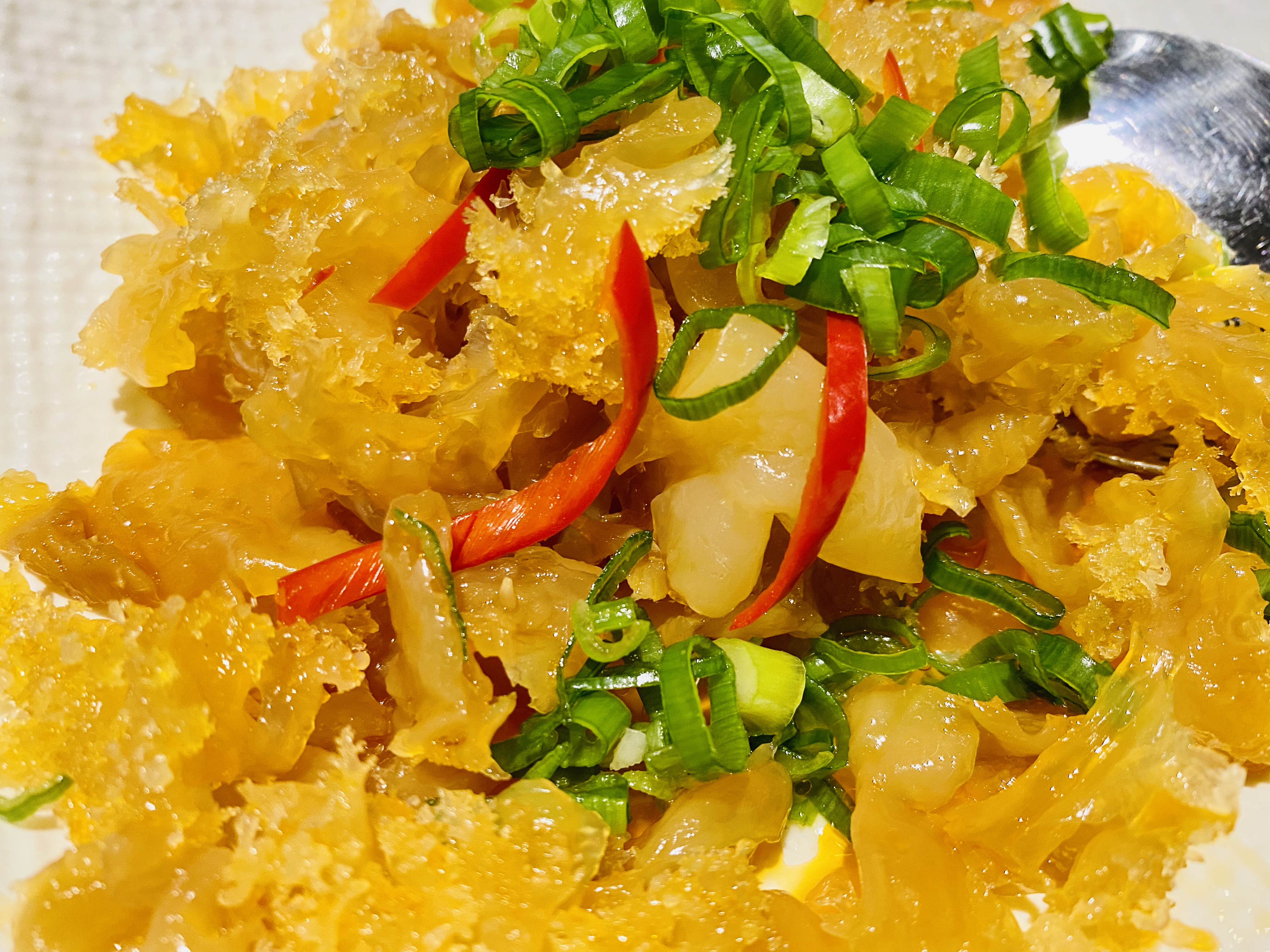 무로 만든 새콤한 피클스러운 전채. 칼집을 촘촘히 넣어서 양념이 안에까지 골고루 들어가게끔 한 게 눈에 띕니다. 상당히 인상적이었던 콩 요리 전채. 검은콩으로 마치 얼핏보면 한국의 콩자반스럽게도 보이지만, 많이 다릅니다. 짠맛은 약하고 달달한 맛이고, 검은콩의 고소함과 잘 어울리게 하였습니다. 정말 신기한 것은 표면에 일종의 투명막처럼 코팅이 되었는데, 어떻게 했는 지가 궁금했습니다. 또한 콩의 익힘도 완벽해서 매우 부드럽게 입안에서 녹아내립니다. 기회가 된다면, 레시피를 구해서 배워보고 싶은 요리! 매력만점!해파리 냉채입니다. 제 블로그에서 여러차례 이야기했지만, 중국권에서는 주로 해파리 머리부분 (이라고 해야하나? 제가 해파리 부위명을 잘 몰라서...) 을 사용합니다. 좀 더 두껍고 꼬득꼬득하다고 해야할까요...닭은 주재료로 한 탕입니다. 국물이 진해보이네요, 실제 맛도 진하고 깊고 좋습니다. 홍콩식 돼지고기 바베큐 차슈입니다. 일단 이 차슈는 살짝 아쉽네요. 맛으로는 딱히 문제가 없었지만, 홍콩 현지의 차슈에 비하면 살짝 미치지 못합니다. 마치 한국 중식의 오향장육과 비슷한 음식입니다. 실제로 맛도 그 친적쯤 되는 듯한 느낌입니다. 숙주 고기 볶음입니다. 무난무난합니다. 홍콩 싱가폴 태국 등에서 많이 먹는 머드크랩 뚝배기 조림입니다. 맛있긴 한데, 이 머드 크랩은 껍질이 강하고 딱딱해서 발라먹는 수고로움도 만만치 않습니다. 대만이면 금문고량주~~!! 대만의 대표 고량주인 금문고량주가 빠질 수 없죠. 홍콩이나 한국보다 월등하게 가격이 착하네요~ 58도의 위엄. 후덜덜.응? 기억이 잘 안나네요. 건해삼인가요... 버섯인가.. 가운데는 샥스핀같기도 하고...광동에서 북경으로 휙~ 점프하는 걸까요. 북경오리입니다! 북경오리도 북방과 남방이 뭐랄까 먹는 스타일이 살짝 다르다고 해야할까요. '홍콩식으로 먹는 북경오리' 를 표방하는 걸까요? 참고로 한국에서는 북경오리를 주로 춘장베이스로 한 소스 (해선장을 함께 섞기도 함) 등에 찍어 먹지만, 한국 외에 거의 모든 지역에서는 해선장을 주로 찍어먹습니다. 셰프님들의 스타일에 따라 해선장에 참기름 등을 살짝 가미하기도 하고, 혹은 기타 부재료를 살짝 넣어서 본인 스타일로 가공하시기도 하죠. 그렇죠. 그루퍼 생선찜이 나와야 광동요리스럽죠. 그런데 좀 다릅니다. 보통 광동 홍콩에서는 생선찜에 사진 처럼 매운 양념장을 잘 가미하지 않습니다. 최대한 생선 본연의 맛을 느낄 수 있도록, 담담하게 시즈닝 맛간장과 파향을 강조하죠. 그런데 이 곳에서는 마치 한국의 생선찜처럼 매콤한 양념장도 올렸습니다. 저는 이 버전도 좋네요, 마치 한국의 생선찜 같기도 하고!! 얼핏보니, 마늘과 고추씨가 보이는 걸 보니 치우차우칠리오일의 건더기 부분을 활용하면 비슷한 모양새가 나올 것 같기도...각 종 중식햄이 들어간 볶음밥입니다. 아직까지 제 주변 한국 분들 중에서 중식햄 좋아하는 분들은 못 보았는 데, 이렇게 총총총 작게 썰어서 넣으니 다들 눈치 못채고 맛있게 잘 먹는 것 같습니다. 작년 말에 대만을 갔을 때 많은 레스토랑에서 본 빠오. 그 당시에 대만 셰프님들 사이에서 대유행이었나 봐요. 한국으로 치면 작은 찐빵 생각하시면 됩니다. 안에는 보통 다진 버섯 등으로 속을 채웁니다. 대만도 거의 모든 식당에서 마무리로 과일이 나오네요. 대만의 과일도 신선하고 맛있네요.