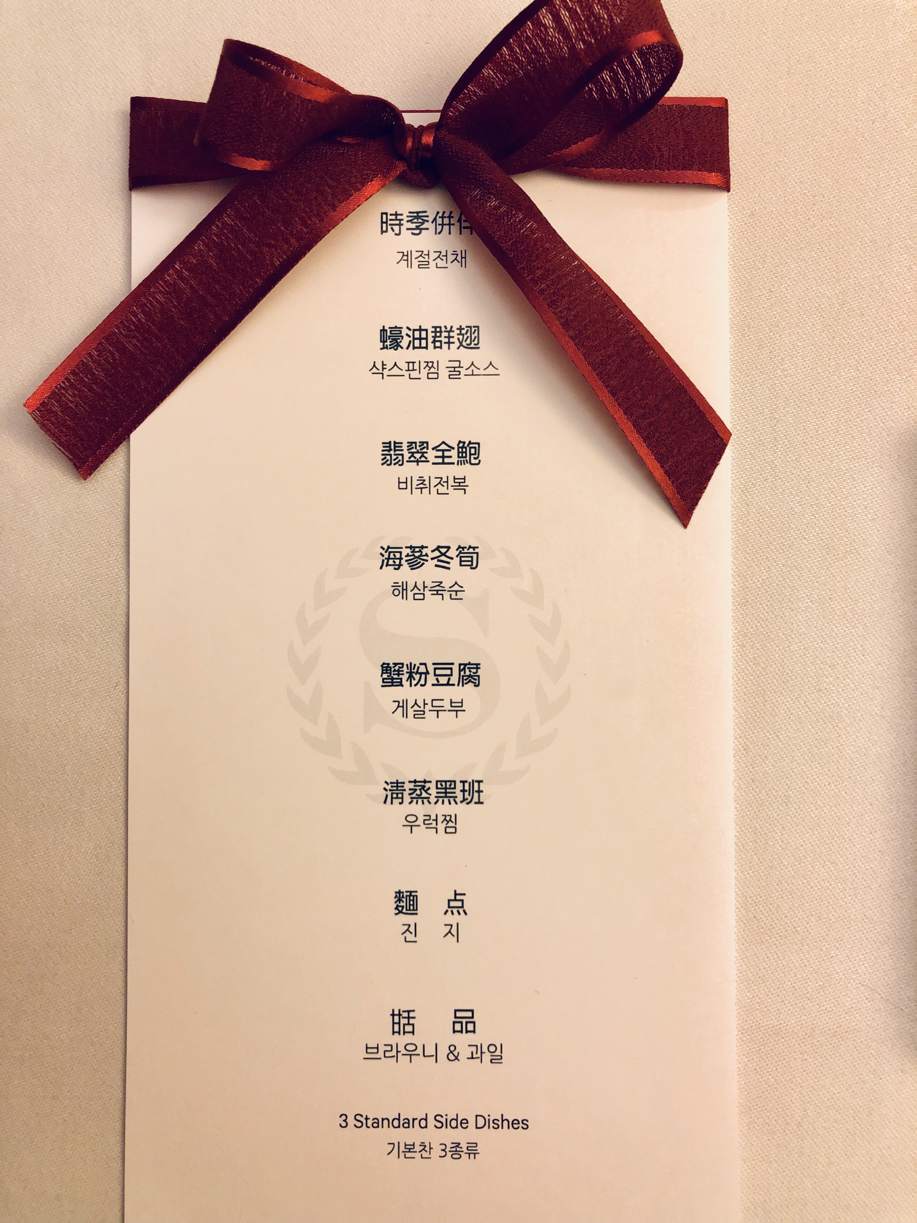 2019년 2월 서울 출장 때 홍콩에서 저와 함께 오신 분들을 모시고 서울 쉐라톤 팰리스 호텔의 서궁 중식당에서 훌륭한 저녁 식사를 하였습니다. 당시에는 총영발 셰프님께서 총괄하고 계셨는데, 2020년 8월 현재는 다른 셰프님이 총괄하고 계시다고 들었습니다. 보통 헤드 셰프가 새로 오시면 음식 라인업도 바뀌고 하니, 현재는 아래 사진들과 다른 느낌일 수 있습니다. 그냥 참조만 하시면 되겠습니다. 여하튼 작년 2월 당시 제가 먹었던 음식들은 따봉이었습니다. 👍🏻