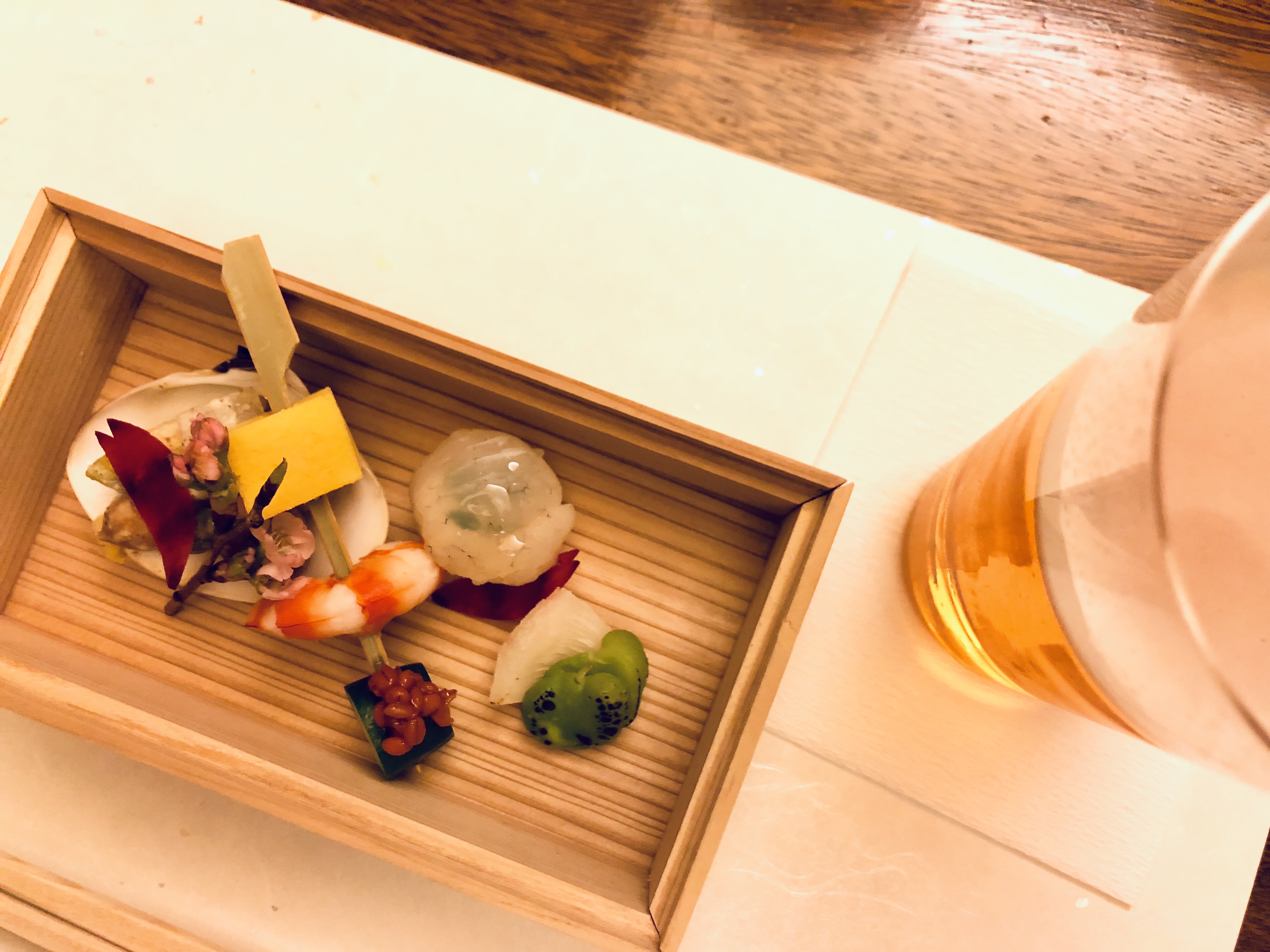 그러고 보니 이쁘게 쓰인 오늘의 메뉴 설명은 사진을 찍지 못했네요. 한지 위에 곱게 써있어서 인상 깊었는데... 여하튼 전채 음식입니다. 캬~ 이런 프리젠테이션은 정말 일본 스럽네요. 아기자기함과 섬세함. 재료들이 좋습니다. 맛있네요!맛있으면 뭐? 주모~ 시원한 생맥주 한 잔 주세요~ 일본식 계란찜이었던가.... 명란이 안에 들었었던가... 시간의 흐름이란.. 나의 기억력이란... 맛있던 것은 기억나는 데, 무슨 생선회 무침 같은 거 였는데..... 회도 나옵니다. 맛있네요. 맛있습니다. 튀김 음식입니다. 튀김도 잘합니다~ 오늘의 메인입니다. 하카타 미즈타키.... 흠... 한국어로 이 음식 뭐라 하는 지 아시는 분 알려주시면 감사합니다. 일단 제 나름대로의 설명을 드리자면 닭(뼈 포함)을 오랜 시간 고아서 기본 육수를 만든 후에, 육수를 끓이면서 마치 샤브샤브처럼 각 종 야채도 넣고, 중간에는 닭고기도 넣어서 샤브샤브로 먹는 음식입니다. 처음에 끓으면 일단 육수를 뜨근하게 마시고 시작했습니다. 좋더군요. 고단배 고콜라겐 음식일 거 같습니다. 하하하. 사진 촬영이 잘 안됬는데, 야채와 닭고기입니다. 샤브샤브로 먹는 중... 마지막엔 죽을 만들어 주었던 거 같습니다. 아니, 이럴수가 한국의 닭백숙스러움이라니!! 하지만, 뭐랄까요 훨씬 훨씬 더 찐합니다. 별 것 아닌 데, 이런 포인트에 대한 생각과 아이디어 정말 좋습니다. 접시도 너무 잘 어울립니다. 입가심용 채소인 듯....아, 이건 기억을 못하겠네요. 뭐였을까요.. 연두부 요리였을까요... 디저트였던거 같은데...
